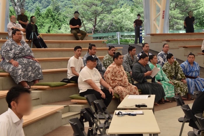 高崎親方をはじめとする部屋力士の皆さんが見学、審判として協力